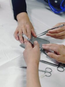 創部ドレーン抜去シミュレーション実習の様子