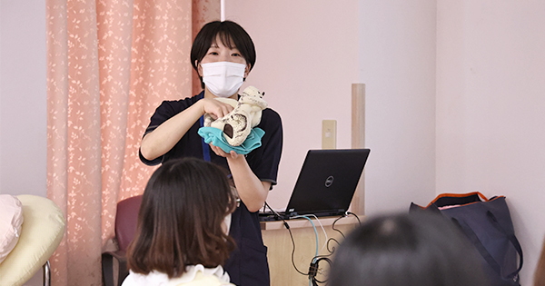 妊娠から出産、入院生活、産後のことまで、赤ちゃんとの新しい生活を迎える準備を、同時期の妊婦さんと一緒に勉強していく場です。お産に立ち会うお父さんも増えており、ご一緒に「母親学級」にご参加なさる方もいらっしゃいます。