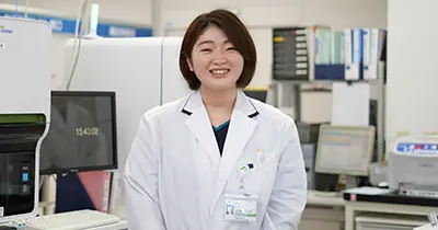 入職して2年目になります。入職後すぐは先輩技師の丁寧な指導の下、各部署でルーチン・夜勤業務のための研修を行います。この研修では多くの知識、技術を身につけることができ、それらが自信へとつながりました。覚えることも多く大変ですが、検査のスペシャリストとして活躍している先輩方に少しでも追いつけるよう日々努力しています。
