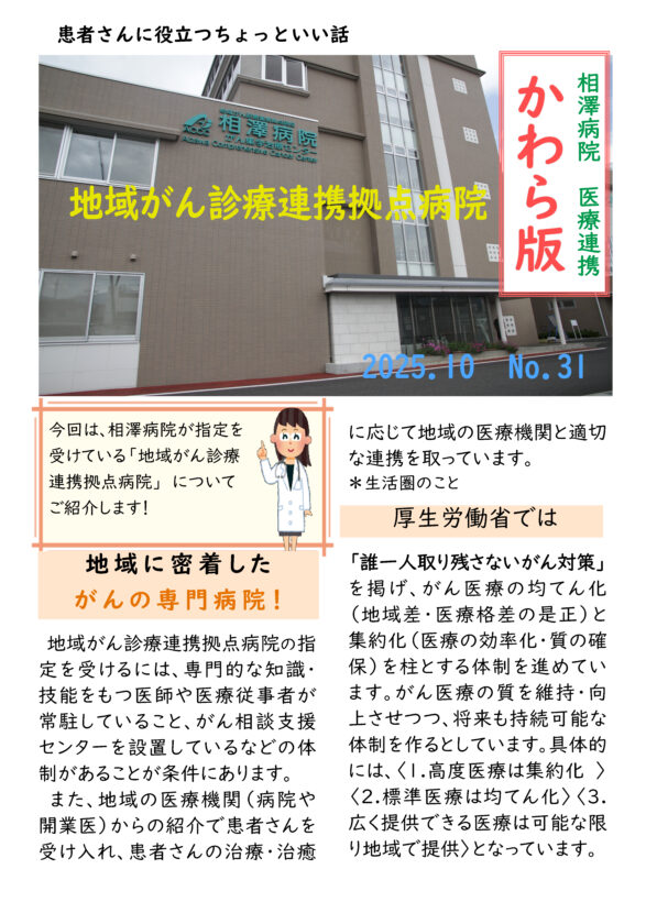 このように、相澤病院では患者さんが安心できる医療体制を目指し、地域の医療機関との連携を大切にした医療活動をしています。