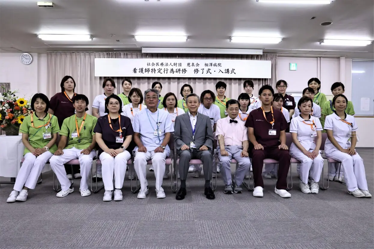 理事長の相澤からは「特定行為研修を修了した皆さんがこれからどう活動していくかが、慈泉会相澤病院だけでなく、医療界にとって大事なことだと思う。日本の医療の働き手が減り、しかし医療の質は担保しなければならないという中で、皆さんが特定行為研修修了看護師として、これから活躍してくれることを期待している。」と修了生に言葉がありました。