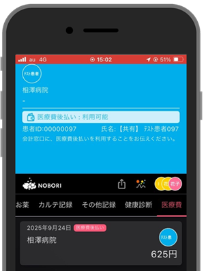 相澤病院・相澤東病院では、2025年10月よりPHRサービス『NOBORI』アプリの医療費後払いサービスを開始いたします。