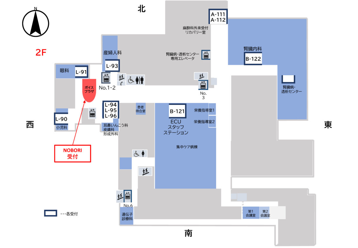 | 受付場所 | 相澤病院 A棟2階 ボイスプラザ(下図参照) |