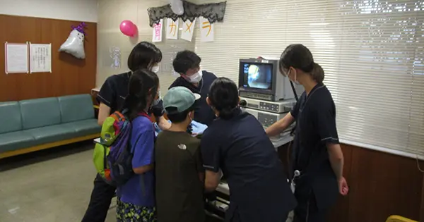 病院祭では実際に診療に用いている道具に触れたり、ロボットの操作が体験したりできるブース、ステージ発表や屋台などが設けられ、地域の方々がたくさん足を運んでくれました。研修医の私たちは、子ども達を相手に胃カメラや腹腔鏡のシミュレーターでお菓子を掴む体験コーナーを担当しました。4年ぶりの開催ということで1日中ブースは大人気でした。こうして診療以外で地域の方々とふれあえる機会があると、医療者としても患者としても温かい気持ちでコミュニケーションが取れるようになりそうだなと感じました。