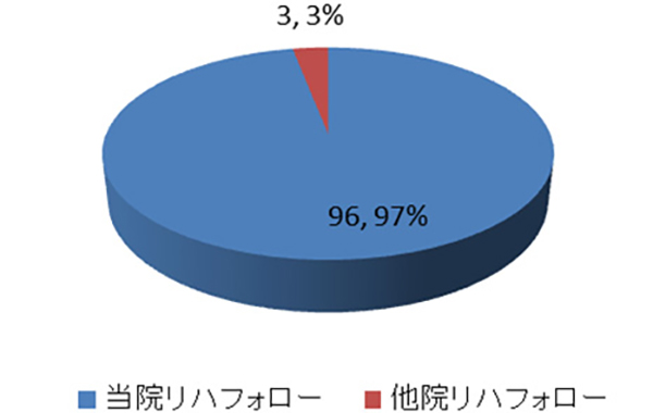救急リハ科から、脳卒中脳神経リハ科、内部疾患リハ科、整形外科リハ科を経て、回復期リハ科が脳卒中や大腿骨骨折などの患者さんを対応しています。さらに生活期を支える訪問リハ科も含め、同一法人内で超急性期から維持期までのリハビリテーションをおこなっています。またスポーツリハ科が、より専門性を活かした診療をおこなっています。